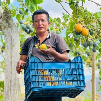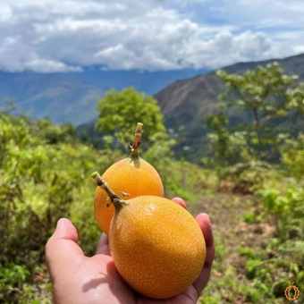 Die süße Granadilla – auch Grenadille genannt – ist eine besonders milde, fruchtige Passionsfrucht aus Peru. Ihr Fruchtfleisch ist süß wie ein tropischer Cocktail und überrascht mit angenehmem Crunch durch die kleinen essbaren Samen.